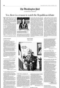 | يظهر الرسم أنه من الضروري قتل الأطفال والنساء لكي تستطيع إسرائيل الوصول لجسد قادة المقاومة وقتلهم. غيّبت الألوان في الصورة للتركيز على الكلمة والخلفية من الصورة. وقد تعرّضت الصحيفة لهجوم حادّ من القراء. | نشرت صحيفة واشنطن بوست في صفحة رسم كاريكاتير بالأسود والأبيض، يُظهر ما يبدو أنه أحد قيادات حماس يربط عددا من الأطفال بجسده من الأمام وسيدة فلسطينية من الخلف، ويقول: “كيف تجرؤ إسرائيل على مهاجمة المدنيين؟” | صحيفة واشنطن بوست | 09 نوفمبر 2023