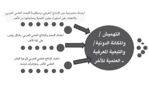 [12] لمزيد من التفاصيل، حول إشكالية التهميش وإشكالية الاحتكار، انظر: الخزندار، «المعرفة العربية في المجلات العلمية: مؤشرات جديدة برؤية حضارية».