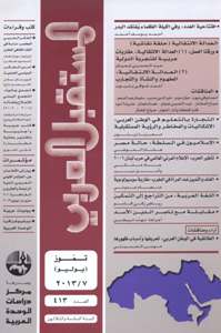 صدر عن مركز دراسات الوحدة العربية العدد 413 من مجلة المستقبل العربي الخاص بشهر تموز/يوليو 2013، ساهم في هذا العدد نخبة من المفكرين والباحثين العرب من خلال مجموعة من الأوراق والنصوص البحثية والحوارية والتوثيقية التي توزعت على عدة أبواب في المجلة: