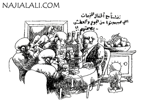 وجدير بالذكر أن ناجي قد أبدع، لمّا جعل تلك الشخصيات، شخصيات مترهلة، متكرشة، مسطحة الملامح، بلا رقبة أو أقدام في الغالب، وكأننا بالعلي يقول لنا إنها شخصيات تنقصها ركائز الاستمرار، فهي طارئة، مرحلية، لحظية، زوالها حتمي، لا تحظى لا بالشرعية، ولا بالمشروعية، ولا بالالتفاف الشعبي، لا جذور لها ولا فروع.